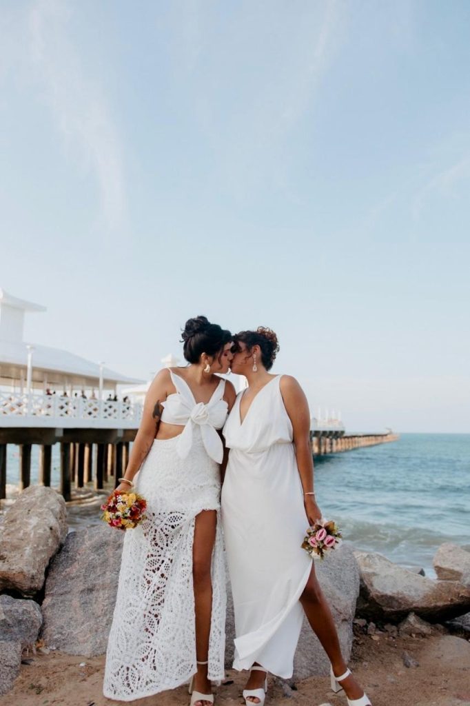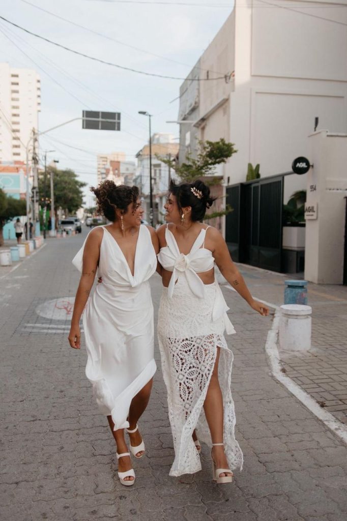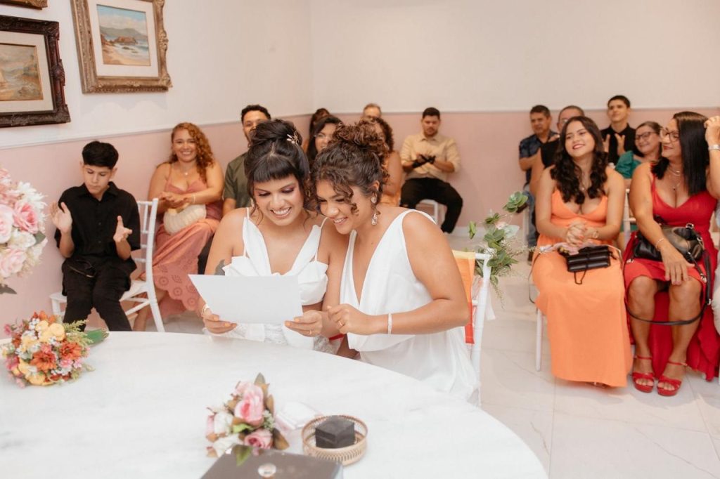 Com quatro anos e meio de relacionamento, Juliana pediu a amada em casamento, no restaurante favorito das duas, em Flecheiras. Durante os preparativos da festa, sentiram dificuldades com alguns fornecedores. “Pareciam preparados apenas para atender casais héteros. Nos questionários, era comum encontrarmos apenas espaços para preencher “noiva” e “noivo”, sem contemplar casais diversos”, lembra.