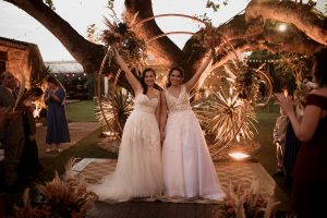 Casaram 27 dias depois, numa cerimônia conduzida por Gabrielle, irmã de Rebecca e ex-amiga de infância de Yêda. As bênçãos foram dadas pelas mães das noivas, marcando simbolicamente o fim de um ciclo e o início de outro, ainda mais feliz. Todas as fornecedoras eram mulheres, muitas delas lésbicas ou bissexuais. “A sensação era de que todas estavam muito felizes por fazer parte da nossa festa. Sentiram-se representadas”, contam.