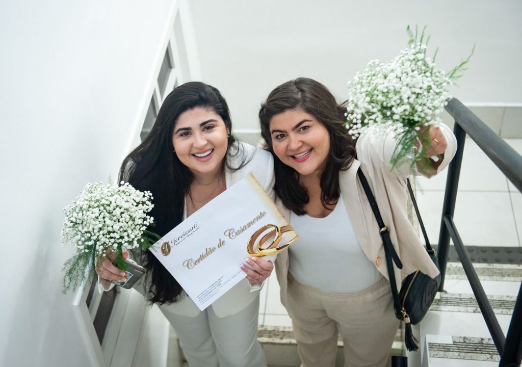 Entre as mulheres que acessaram esse direito no Ceará, estão Yêda Baquit de Paula Costa e Rebecca Gadelha Sousa Costa. Elas se conheceram ainda na infância e se reencontraram em 2015, quando Yêda, já formada em arquitetura, chegou para reformar a casa e nunca mais saiu da família. É que o amor pode surgir nas situações mais banais, como visitas a lojas de material de construção, que logo viraram cafés compartilhados, trocas de gentilezas, presença… até decidirem viver o que estavam sentindo.