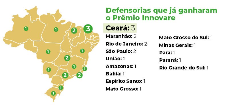 Esta é a terceira vez que a DPCE ganha o Prêmio, o que faz dela a Defensoria Pública com mais troféus na história do Innovare, que existe desde 2004 e tem uma categoria específica para a instituição desde 2006. As outras duas vezes nas quais o Ceará venceu foram em 2011, com um trabalho voltado a pacientes que dependem de energia elétrica para sobreviver, e em 2013, com o monitoramento da situação processual de crianças e adolescentes em abrigos.