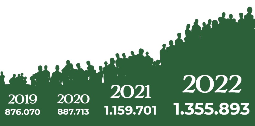 Nos últimos quatro anos, a Defensoria Pública registrou constantemente o aumento na procura pelo serviço. Em 2019, foram 876.070 atuações; em 2020, a Defensoria registrou o número de 887.713. No ano seguinte, foram mais de 1,1 milhão de atuações (1.159.701). O número registrado em 2022 (1.355.893) significa um aumento de 54,77% em relação ao ano de 2019.
