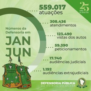 Para o cômputo geral deste ano, o prognóstico é de mais uma vez a DPCE superar um milhão de procedimentos nas 77 comarcas – entre sedes e vinculadas – nas quais tem atuação. Até agora, foram mais de 308 mil atendimentos, mais de 123 mil vistas dos autos, quase 60 mil peticionamentos em casos de diversas áreas com a participação em cerca de 19 mil audiências, entre outras demandas.