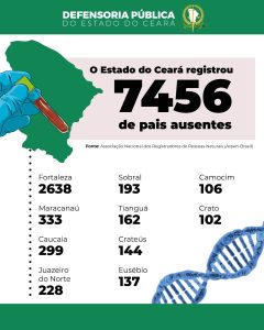 O serviço é essencial diante da realidade do estado: só em 2024, o Ceará registrou 7.456 casos de pais ausentes no registro civil das crianças nascidas, segundo a Associação Nacional dos Registradores de Pessoas Naturais (Arpen-Brasil). Fortaleza lidera o ranking com 2.638 registros de crianças sem o nome do pai na certidão, seguida por Maracanaú (333), Caucaia (299), Juazeiro do Norte (228), Sobral (193), Tianguá (162), Crateús (144), Eusébio (137), Camocim (106) e Crato (102).