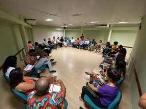 Dirigentes e membros de diversas entidades apresentaram à gestora pautas sobre conflitos socioambientais nos perímetros costeiros: questões que afetam povos originários e comunidades tradicionais, impactos decorrentes da implantação de parques eólicos no mar e de energia solar em grandes territórios, alertas climáticos, etc.