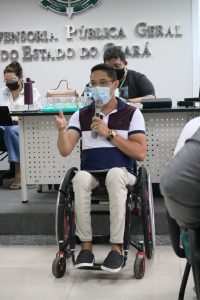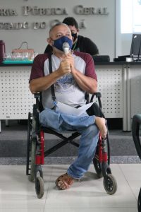 Dentre os participantes, estava o cadeirante Edmilson Moreira. “Trago comigo não só o segmento das pessoas com deficiência, que é o mais visível, sou LGBT, sou umbandista. Uma série de coisas que geram estigmas que uma sociedade preconceituosa costuma alimentar. A primeira coisa que me chamou atenção na apresentação da Defensoria foi a formação da mesa. Vocês viram quantas homens estavam aqui e só duas mulheres? Isso ainda é retrato de uma sociedade patriarcal, machista, onde a mulher ainda é calada, porque não é dado espaço de voz. A segunda coisa que me chamou atenção foi que não tinha nenhum negro. Ainda são fechadas as portas de muitas instâncias para a população negra, que inclusive é a maioria”.