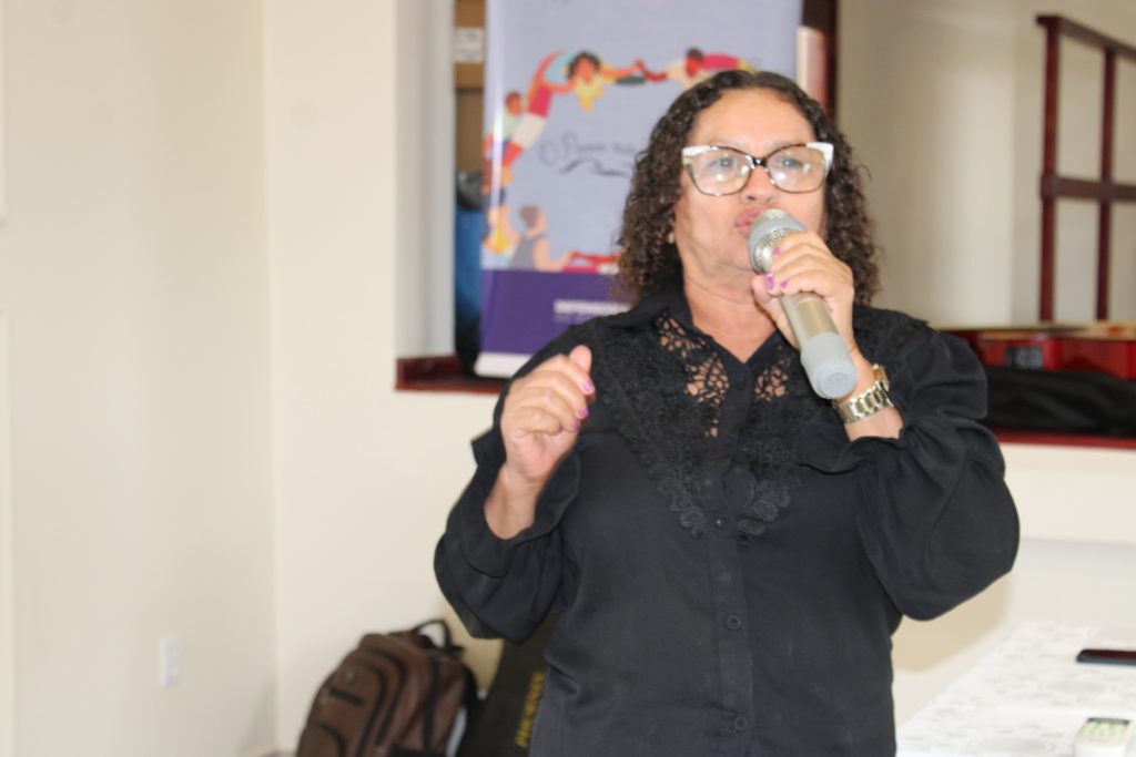 ”A Defensoria Pública tem um papel fundamental de libertação da sociedade”. A fala forte foi de Aurenice Santiago, mulher negra, vice-presidenta do Sindicato dos Servidores Públicos Municipais de Canindé (SINDSEC), que destacou o quanto o Orçamento Participativo tem o poder de transformar o ambiente onde chega. “As pessoas acham que a Defensoria é somente para entrar com um processo na justiça e fazer o pedido da pensão, por exemplo. Mas é muito mais além disso! Que bom que Canindé está recebendo hoje esse debate, porque ninguém vai sair daqui como entrou. A gente vai sair com o sentimento de responsabilidade. É um papel nosso defender a vida em primeiro lugar, que é o que importa. Lutar diariamente pela saúde, justiça social, educação deve ser o nosso compromisso”, ressaltou.